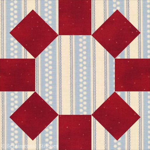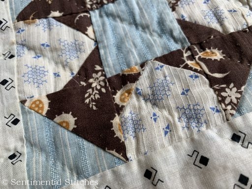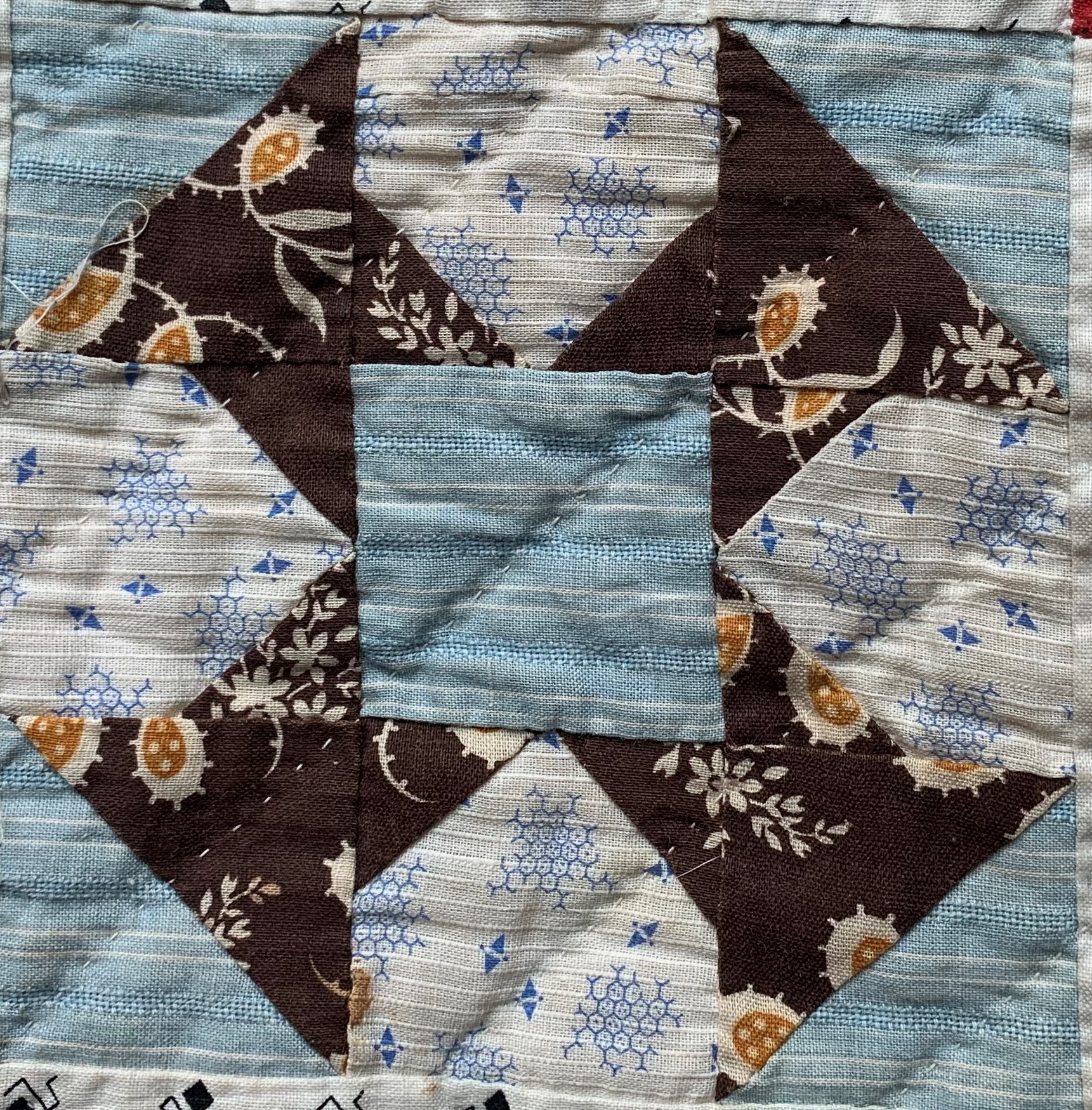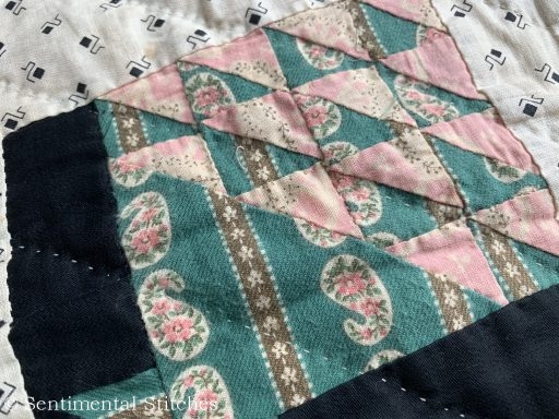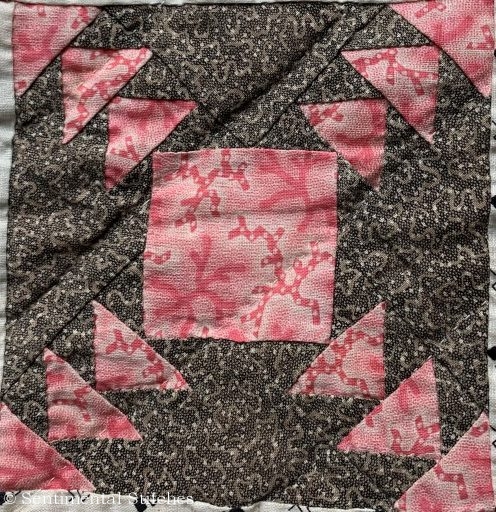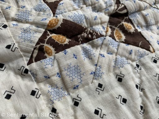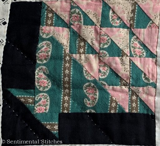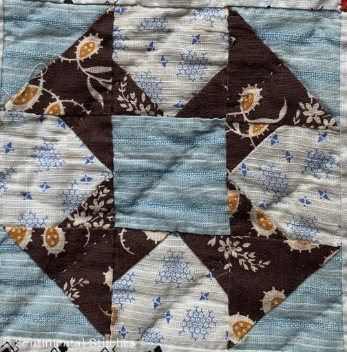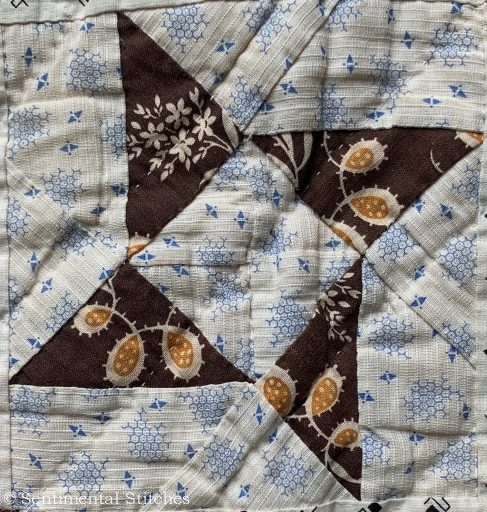 Our last block is your easy, peasy, rotary cut, machine pieced block of the month. The fabrics are the same as those in Block 50 which is another reason I think this group of blocks were made at almost the same time.