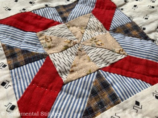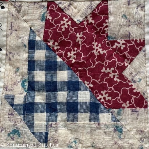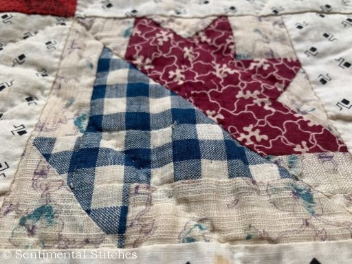 I love the tinting on these old quilts. Sometimes it was air brushed and other times it was done by stenciling the color.