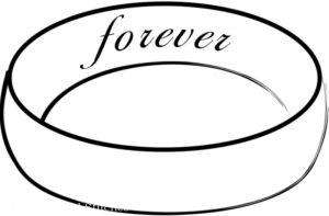 Leaf clusters and an oval of flowers.