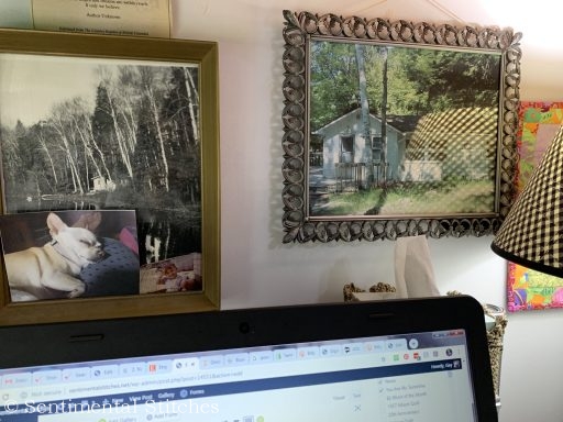 When I'm working, this is my view over the top of the laptop. Not very exciting but it keeps things in perspective for me when I am getting tired. It got me to thinking about what will we all be looking at over the sewing machine when we spend hours sitting there over the next few weeks. How about with applique, embroidery or knitting in our hands? Do you look outside? Are you watching television? Listening to music?
