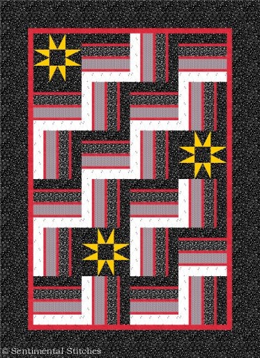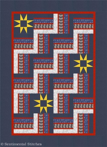 A newsletter went out this morning with a link to a today's free pattern for Stars & Rails. It's a simple design that's pretty quick to sew together for a nice lap size quilt.